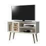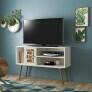 Rack Retrô Virtus vai deixar sua sala um charme. Possui 1 porta articulada e 2 nichos para aparelhos variados. Ah! Seus pés são de madeira maciça com base reforçada e possui espaço para TV de até 42 Polegadas. Show, não é?