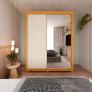 O Roupeiro Royale se destaca pela praticidade das duas portas de correr, que contribuem para a otimização de espaço, contando com um amplo espaço interno, onde sua estrutura é formada por três gavetas, 4 prateleiras e espaço para vestidos e calças. O roupeiro Royale conta também com porta lateral de espelho trazendo mais sofisticação ao produto. O roupeiro Royale agrada pelo seu design compacto e arrojado e portas reversíveis o que possibilita até mais opções de montagem.