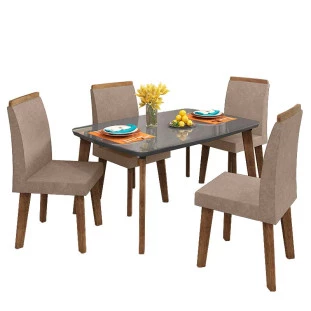 Conjunto Mesa de Jantar Tampo Vidro Com 04 Cadeiras 120x90 Jade RV Móveis Off White/Pena Caramelo