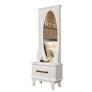O Toucador JB 7333 é composto por 1 gaveta grande para organizar seus produtos, maquiagens, etc. Conta também, com um amplo espelho oval para você se embelezar à vontade e é sustentado por 4 pés de madeira garantindo toda qualidade para deixar seu dia-a-dia ainda mais prático!